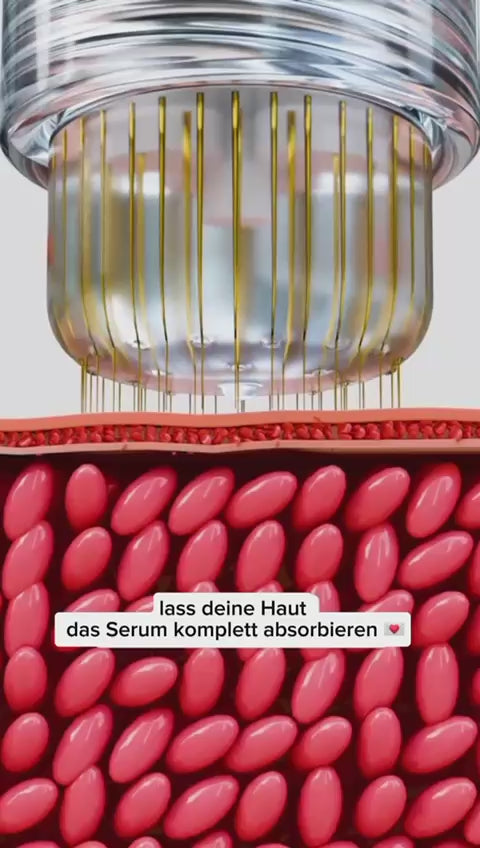 Trage das Serum mit dem Microneedling-Tool auf, um die Aufnahme der Wirkstoffe zu unterstützen. Die Anwendung regt die Hauterneuerung an und sorgt bereits nach der ersten Anwendung für einen frischen, glowy Teint.